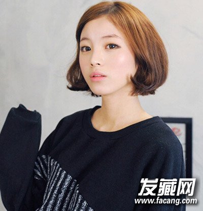 金棕色的染发给人年轻时尚的感觉,刚到脖子的短发简单百搭,发型整体蓬蓬的很有线条感,而内扣的发尾修颜又倍显可爱气质。