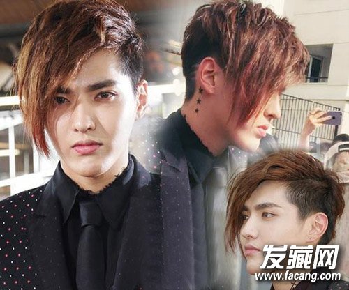 第二款发型吴亦凡带着它出现在了纪梵希2016春夏男装的秀场上,作为唯一受邀的中国明星亮相。和机场造型相比又是一次画风的突变,加长的刘海斜着遮住半边侧脸,顶部微卷,后面剃成寸头还划出三道爪印,酷劲十足。连一向以毒舌著称的时尚评论人Suzy Menkes都发了ins合照并对他称赞有佳,但也有网友不留情面的说“好像非主流”、“杀马特”……