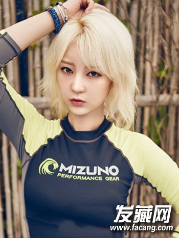 斜刘海短发是一款非常适合大脸女生的气质短发,浅金色短发微微蓬松的效果加上齐刘海,很有瘦脸的效果。