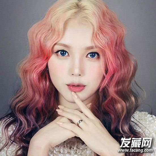 素有妙手生花美誉的韩国彩妆博主Pony同样擅长于撞色挑染。金色到粉色,再到紫色的完美过渡,配以微卷的发梢,不仅让她充满了温暖的女人味,同时这种科幻感十足的渐变发色让她的五官越发立体。