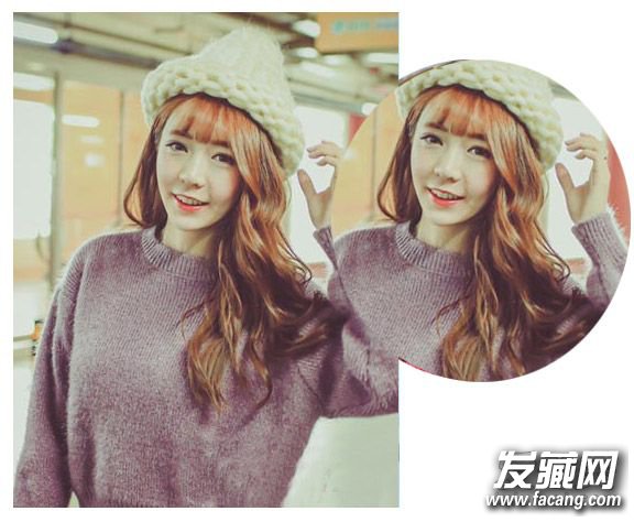 再搭配的是微显凌乱感的女生刘海发型设计,而这种浅色系的栗色染发颜色同样可以衬托出女生肤色的白皙感,再搭配飘逸的长直发更添甜美可爱少女风。
