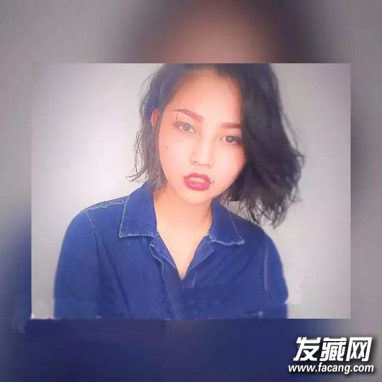 复古紫红色唇色搭配黑色睡不醒烫发。