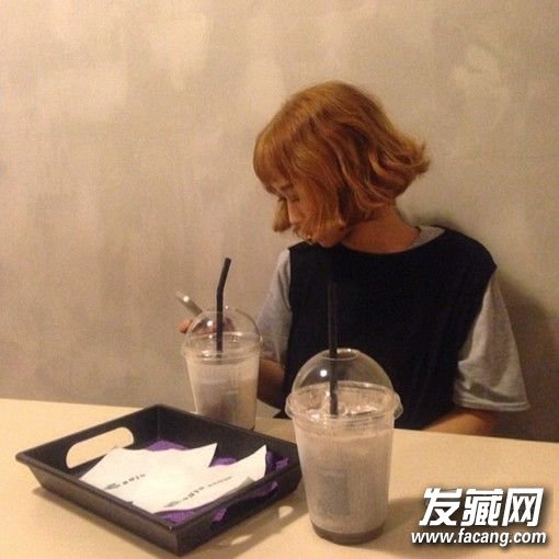 一款俏皮短卷发,波波头弄卷之后增添可爱感,染成这种偏黄的发色整个人都变得显眼了不少,清爽简约风很抢镜。