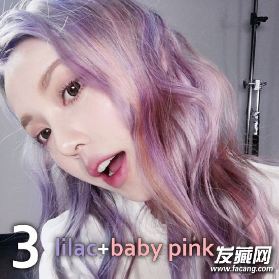 浅粉色挑染雾面紫,渐层染发让长发呈现出好像彩虹一样的效果。