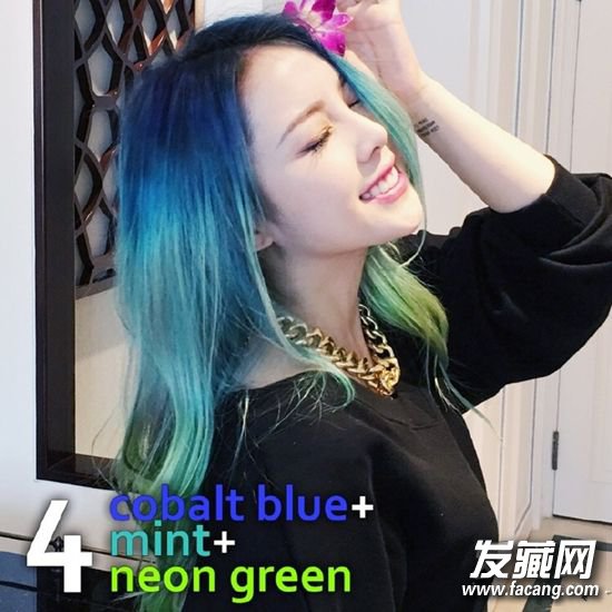 深蓝色+青草绿,颜色由深到浅变化,甜美吸睛,渐变色效果梦幻吸睛。