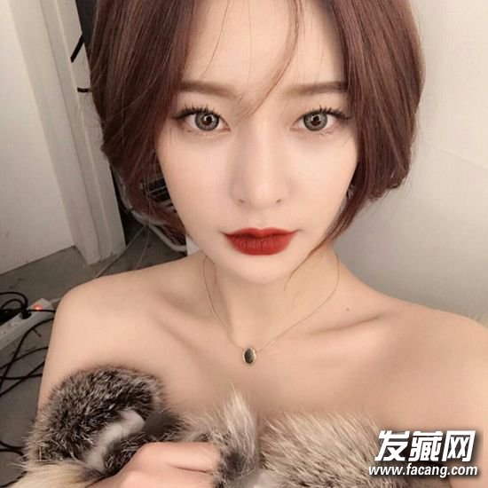 经典暗红色,酒红色太鲜明,暗红色就很好的中和了这一点,配上同色系的唇妆美极了。