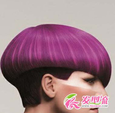 紫色的发色你敢尝试吗?这样的颜色在沙宣发型上经常会用到,它和时尚发型搭配出意想不到的效果。厚厚的发顶和下面的形成鲜明的对比,让层次更加明朗清晰。圆弧度的修剪很是特别。