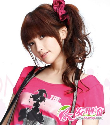 小公主式的卷发扎发人见人爱,取后面上层适量发丝随意扎出发髻。下层秀发散落肩上,发尾做出内卷的弧度更有名媛范儿。斜刘海掩饰了肉肉脸,搭配白色发箍让发型很显俏皮。如此甜美可爱的发型,非常值得尝试哦!