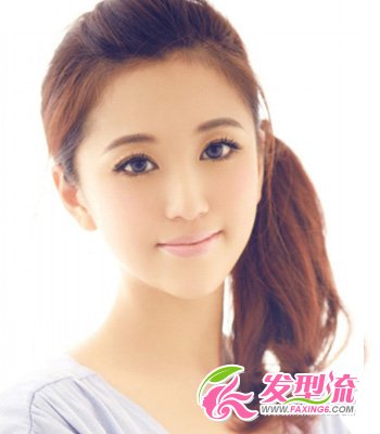 显露额头的发型最能体现出清爽的感觉,干净的美丽明眸呈现人前。从正而看分成三股的发丝线条,给人视觉上的惊喜感。将所有发丝斜扎在一侧,马尾的卷翘发梢垂落在肩上,营造出俏皮的小女生灵动气息。