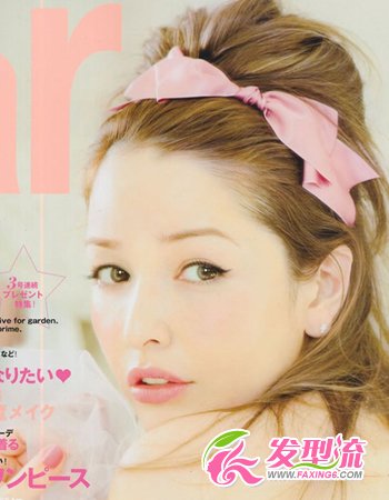 余留后尾秀发,将亚麻系发色长发直发扎在头顶,在发束的基础上对折并扎,与秀发相呼应动感中显现出妩媚感。利用缎带蝴蝶结装饰发型,打造出甜美的日系范儿。再化上日系妆容,突出眼妆呈现出MM柔美的气质。
