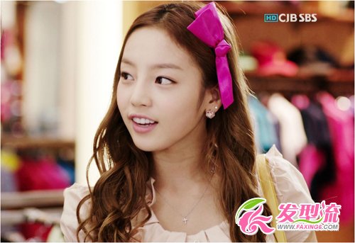 依旧是卷发造型,只是变换了蝴蝶发饰,轻易就打造出不一样的风格。想要变身甜美系少女,蝴蝶结是最好的装扮法宝。