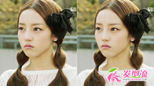 在双马尾的基础上将发束扎出几个发结,更具造型感。超高出境率的蝴蝶结造型让发型更加可爱,提升好人缘。