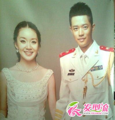 充满了端庄的一款盘发发型,中分的发线营造出温柔于端庄,在时尚中透露出贤淑。和新朗的庄严军装搭配,显现出大气感。
