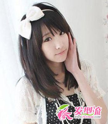 柔顺丰盈的中长发随意披着,打造出蓬松效果,头顶些许凌乱,自然又带着小孩子的几分调皮。中分刘海和整体蓬松效果把娇小的脸型显得更精致。带上一个超级甜美的蝴蝶结发箍,可爱度直线上升,不同的发饰会有不同效果哦!