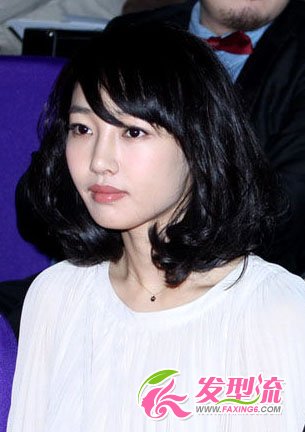 传统自然黑色更能展示东方人的气质,小编认为白百合这款时尚发型比较适合脸型娇小的女生,脸庞两颊的头发打造出自然蓬松的C型卷度,很好的将脸型拉宽,看上去丰盈有质感。厚重的斜刘海配合素雅的妆容,知性优雅有气质。