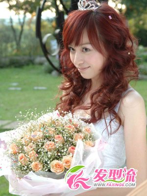 台湾人气偶像王心凌,时常以卷发出现在观众视线。棕红发色令卷发更加耀眼,螺旋卷度的卷发丰盈动感,斜刘海的修饰,有瘦脸效果。小皇冠的装饰,很唯美哦。