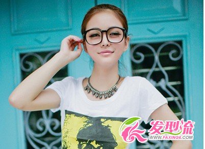 2013年最时尚的女生盘发,干净利落是重点,全部扎起的头发,不拉发丝的清洁,迅速提高了造型的清爽度,大大的椭圆眼镜,为造型添加了几分的俏皮与可爱。