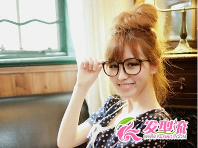 夏季女生最喜欢的花苞头,扎起的头发,很松散随意,使发型更符合年轻女生的青春俏皮心理,而金黄色的染发颜色,阳光活力的青春朝气,从发型上慢慢散发,甜美的笑容,刘海、眼镜,非常的俏皮可爱。