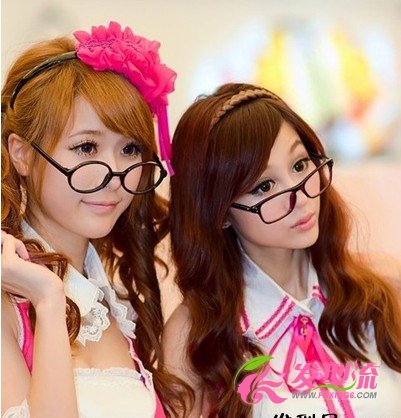 双马尾、眼镜,众多宅男的最爱,萌感可爱,偏分微卷发,甜美的公主气质。