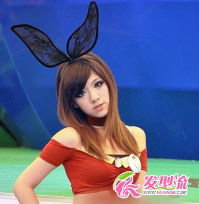 偏分的大片刘海直发,黑色的米奇发箍,小性感的可爱女生味道。