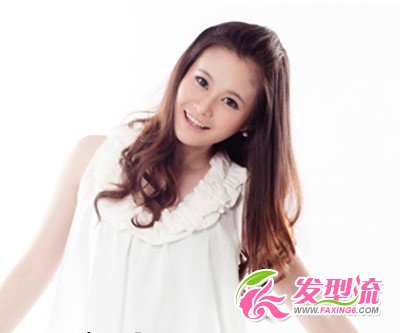 小清新的长卷发,柔顺的头发,发尾凌乱的卷曲,自然的散肩,更有女人魅力,而在头顶的刘海处理是这款女生发型最大的亮点,手指拉出蓬松,有增高的作用。