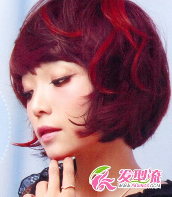 通过对比铜色挑染,让整个人也明朗了起来,不但有自己的个性,还彰显了活力。底层做饱满效果,表层做自然S形弯度效果。绯红色染发尽显女性迷情魅力,平实的刘海遮盖整个额头,修饰出精致的轮廓,让五官更显立体。