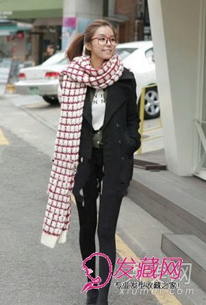 如果是长发戴围巾的话最好是将头发扎起来,那样发型与围巾之间就不会互相影响了,长长的围巾很个性也很休闲哟,不错的装饰品。