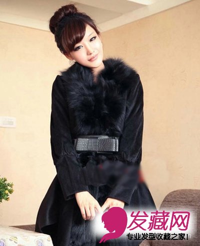 刘海大片的酒红色花苞头,盖住额头的刘海设计,凸显精致五官,黑色的皮草大衣,美美华贵。