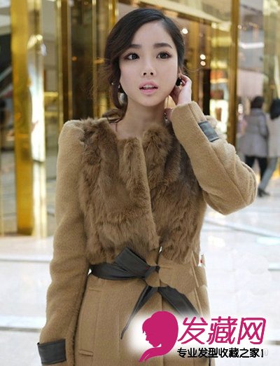 温柔的优雅盘发,卷卷的刘海,时尚大气,好看皮草,名媛气质的发型。
