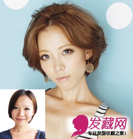 这款甜美的发型,要根据脸型修剪出适当弧度的齐刘海,用刘海遮住额头,能更好地达到小脸效果。记住最佳刘海长度是在眉毛下、睫毛上。