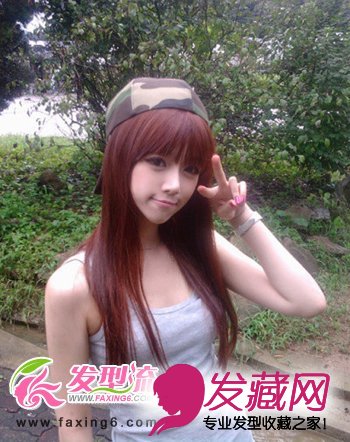 清纯的直发发型是现在90后美眉最喜欢的一款发型了,柔软顺直的直发发型随肩披散,清纯优雅,齐刘海的打造,不仅起到减龄的效果,而且还很好的修饰了脸型,海军风帽子的搭配,清纯可爱没得说。