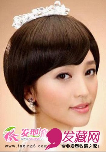 齐刘海短发俏皮可爱,有着简单的帅气和女人的妩媚,修剪整齐的短发搭配栗色的发色,使整个发型看上去更加有质感,有光泽度,用精致的银色发饰来做装饰,纯真可爱,犹如曼舞的精灵,有着公主梦幻般的感觉。