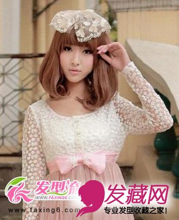 这款梨花公主头发型专为娃娃脸的MM们设计的,发型设计的重点在于整个发型不对称的修剪,发尾的内卷衬托出女孩精致的脸蛋,有着芭比娃娃的可爱,在齐刘海下的一双灵动的眼睛,有着清纯优雅的韵味,在头顶别上一款带蕾丝花边的蝴蝶结发饰,甜美公主的气质征服不少男生的心。