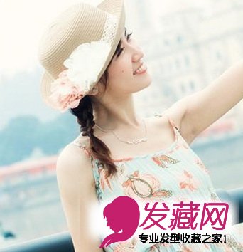 短发也可以进行编发哦,编成一个小小的马尾辫子既清新又甜美,草帽与碎花裙的搭配更显得清秀!