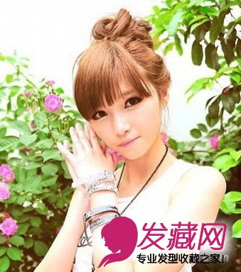 清爽的丸子头发型给人清新怡人的感觉,洋溢着青春的动感气质,活力四射。丸子头的随意性让这款女生发型更显自然大方,齐刘海的发型设计,呈现出了女生精致的小脸。