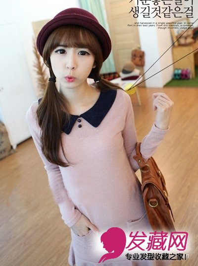 可爱的双马尾发型+枣红色小礼帽的搭配可爱卖萌的超范儿味道十足。