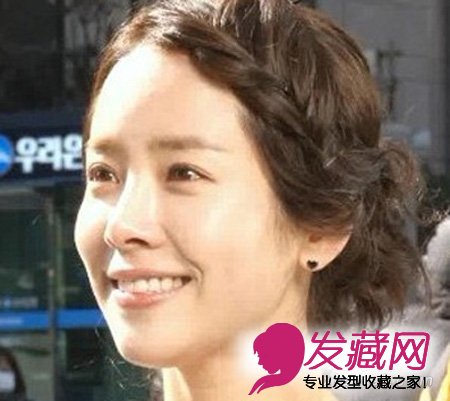 韩智敏的这款刘海编发发型,长长的刘海用小麻花辫子处理,非常甜美可爱,减龄指数百分百。
