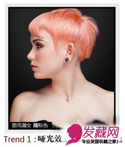 糖果藕粉色,则是更具年轻感的选择。接近裸色的染发在去年夏季开始逐步热门起来,到今年夏季则成为主流之一。选择泛出珍珠哑光珠光质感的藕粉色,搭配富有几何感线条的发型,是朋克潮女们的最爱。
