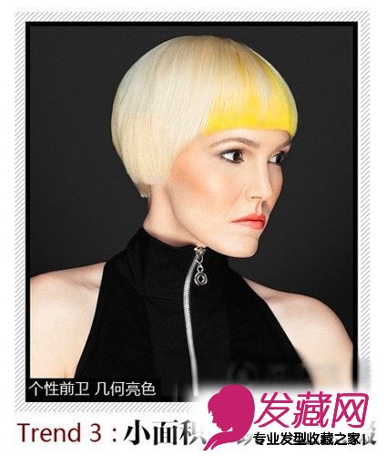 大胆选择亮色也是本季的一大特色,亮黄色、翠绿色、水蓝色等,这些过去几乎不会用的“跳色”,在本季配合几何图案,在顶发或刘海位置的装饰性,视觉效果大大加强,成为更具个性的“发饰”。