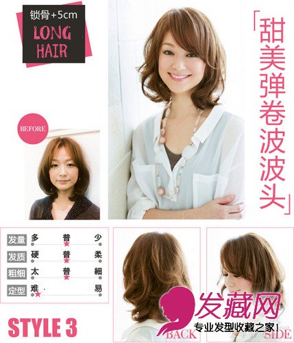 导读:Style3 甜美弹卷波波头 造型重点:斜分刘海 半弧波波卷 原来的内弯BOB头一个不留神留长了就成了难看的头盔,急速改造事不宜迟!斜分贴面刘海是修饰面型的绝佳宝物,朝随意方向微微勾起的半弧型波波卷,头发长度微微
