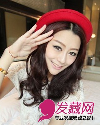 不显老气更显时尚的中长卷发,黑色发色的女生发型,清纯优雅展现女孩小清新的迷人气质,富有动感气息的卷发发型散落双肩,中分中长卷发一直都是气质又瘦脸的发型,搭配红色礼帽显得更加的调皮可爱了。