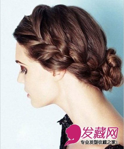 这款是编发盘发发型,两侧编成较粗的麻花辫发型,后面简单的扎起丸子头,整体大方而又高贵。
