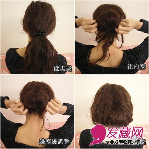 只要绑个低马尾,然后往里面塞,再调整一下,就完成了。