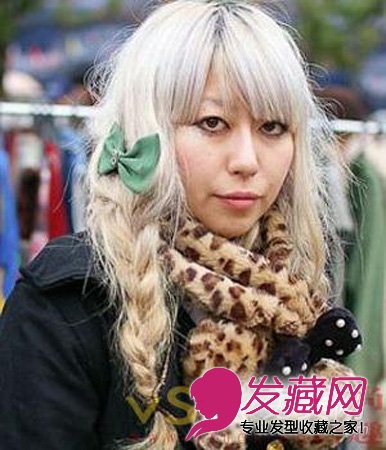 这个给人的第一印象又是什么呢,一个老气的大妈脸配上一对纯真的三股辫,问题是还是染成了白色的两个发辫,是装可爱?还是童心未泯。