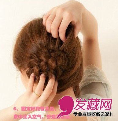 固定好花苞之后,拉松后面的头发,让头发注入空气,营造蓬松感