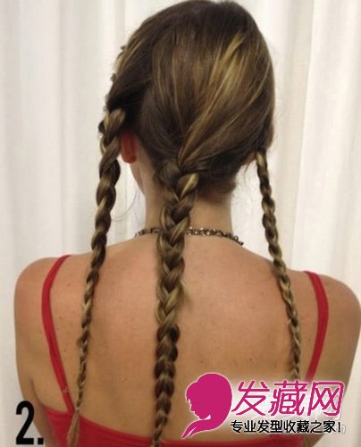 两侧的辫子按加股辫的方法编,就是每编下一股的时候,从两边各加一束头发进来,而中间的就按一般麻花辫的编发即可