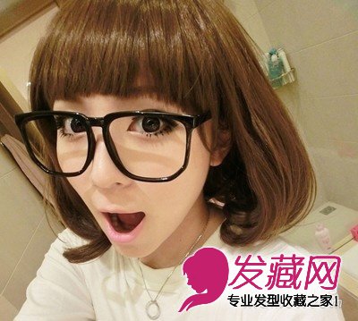 小编点评:超可爱的内扣梨花头,达到修小脸的效果。减龄的齐刘海,显得甜美可爱。黑色大镜框修饰脸型又显灵动俏皮。