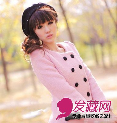 可爱侧马尾,把一头浪漫感的卷发扎成一个侧马尾,再戴上一个可爱的贝雷帽尽显女生优雅气质,齐刘海的修剪给女生多了几丝甜美噢!
