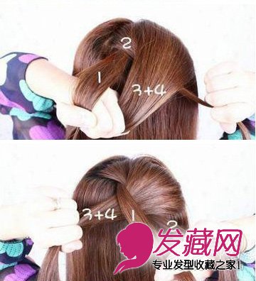 头发发辫交叉到一起 编发过程中再次取出一束头发