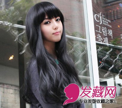齐刘海最能衬托出脸蛋的小巧,前额厚重感的设计与刘海及脸颊旁的发丝独特的裁剪都起到修饰脸型的作用。